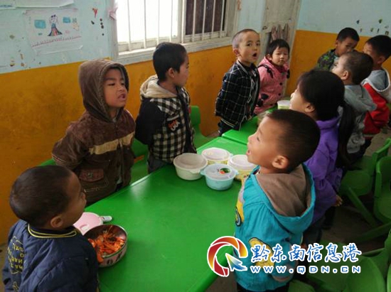 本網訊 走進從江縣翠里鄉高武小學,操場上完全被正在新建的綜合樓和食堂的磚頭、沙子擠占,幾乎沒有一片空地,歡快的歌聲透過花窗傳遍校園里,筆者甚是驚奇,走進教室,只見20多張稚嫩的小臉蛋直直的站著,桌子上擺放著盛有飯菜的飯盒,講臺上,一位年輕的男老師正領著這20多位幼兒班學生齊聲合唱飯前一支歌:勤洗手、愛父母、愛老師、愛祖國……