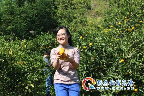 本網訊 秋天到來,各種水果相繼到了成熟的時節,貴州省錦屏縣的橘子也終于熟了。近日,在該縣銅鼓鎮四灣的橘子園內,來自縣內外的客人正忙著自己上山采摘、忙著擺出各種pose拍照,過起了“采橘山林中”的生活。綠油油的小樹、黃澄澄的橘子、美滋滋的人群,到處都是秋收的喜悅。