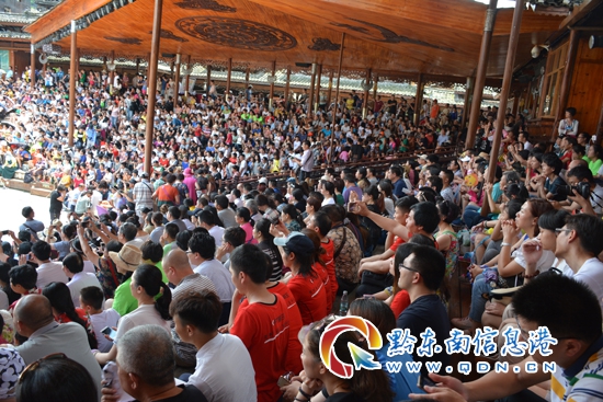 節(jié)日期間,記者在現(xiàn)場看到,每天前來西江千戶苗寨觀看“吃新節(jié)”各項活動的游客可達三、四萬余人次,特別是7月15一19日游客前來最高峰,游客來來往往絡繹不絕,每天不少于五萬人次,使節(jié)日熱鬧非凡。(張希才 攝影報道)