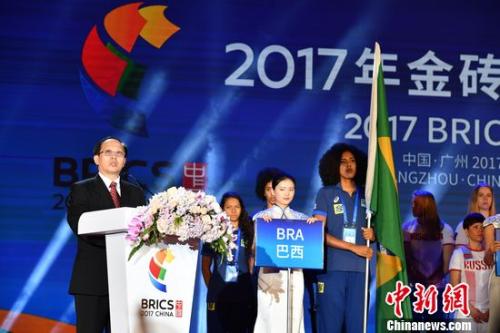 國家體育總局局長茍仲文宣讀了中國國家主席習近平的賀信,并宣布2017年金磚國家運動會開幕。陳文 攝