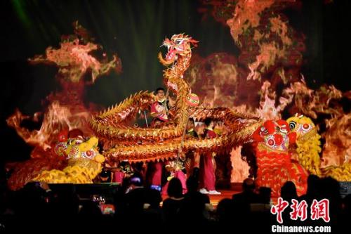 17日晚開幕式上的舞龍、舞獅表演。陳文 攝