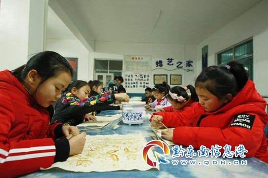 1月3日,在丹寨縣城關(guān)第一小學(xué)少年宮,蠟染興趣班的學(xué)生在學(xué)習(xí)蠟畫