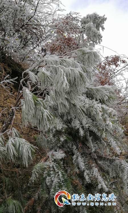 本網(wǎng)訊 1月8日,在連日的強冷空氣影響下,海拔1300多米的丹寨縣排調(diào)鎮(zhèn)貓鼻嶺森林公園出現(xiàn)了大面積的霧凇景觀。生態(tài)良好的貓鼻嶺森林公園猶如“銀裝素裹”,大自然贈予的冬季美景盡收眼底。(楊武魁 攝)