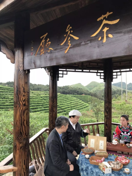 茶園距離丹寨萬達(dá)小鎮(zhèn)約半小時(shí)車程。袁鎮(zhèn)長(zhǎng)不僅認(rèn)領(lǐng)了一畝茶園,還前往那片鮮綠的千畝茶山,種“鎮(zhèn)長(zhǎng)樹”,品丹紅丹綠!