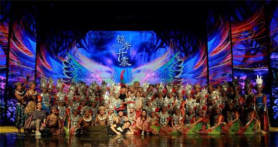 據(jù)悉,由萬達(dá)集團(tuán)攜手多彩貴州文化藝術(shù)公司打造的大型苗族歌舞情景體驗(yàn)劇《錦秀丹寨》,以丹寨國家級(jí)非物質(zhì)文化遺產(chǎn)錦雞舞為主要元素,通過麻鳥支系中關(guān)于錦雞銜來稻種、讓苗族人民得以繁衍生息的傳說為故事發(fā)展脈絡(luò),以炫麗奪目的舞臺(tái)表現(xiàn)形式,浸入式觀眾體驗(yàn),展示了歷經(jīng)苦難的苗族人民“以美麗回敬苦難,以感恩回報(bào)生活”的民族精神。