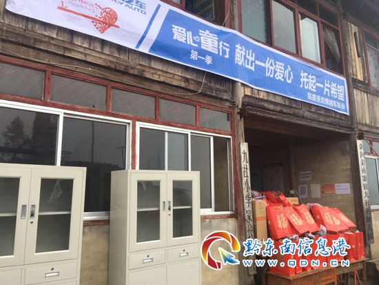 吉利汽車凱里圣浩4S店為山區(qū)小學(xué)送去的電視機、文件柜、棉衣、文具用品、籃球等