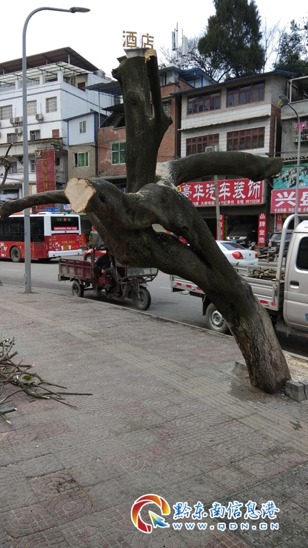 本網(wǎng)訊 3月13日,筆者發(fā)現(xiàn),位于凱里市洗馬河新生路口的一棵奇特“歪”樹被砍了枝頭。