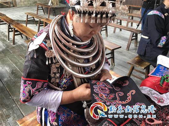 上海合作組織成員國駐華外交官代表團在下司古鎮導游的帶領下,先是到達1808新民文創街的簽名墻進行簽名儀式。活動上,黔東南地區非物質文化遺產傳承人在現場演繹銅鼓民間畫創作、互動扎染制作、手工刺繡技藝等表演,讓代表團的腳步變得緩慢了起來。