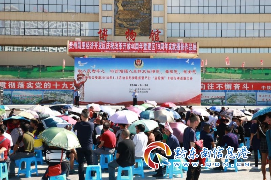 活動期間凱里市公安局刑偵、禁毒、禁賭掃黃、治安、交警、特巡警、反恐、派出所等部門民警到現場為群眾提供法律咨詢、解答疑問服務。同時本次活動還邀了市黨政部門、企事業單位、教師、學生、社區居民、個體私營業主、駕駛員代表等600余人參加。