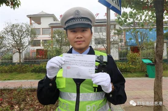 10月16日上午,記者經多方打聽了解到,最先發布這條朋友圈的凱里開發區交警大隊城區中隊的民警李聰靈,當時收到這封信的人正是他,遞交這封信的小女孩是翁義小學五年級(5)班的學生朱艷和她的同桌王馨藝。