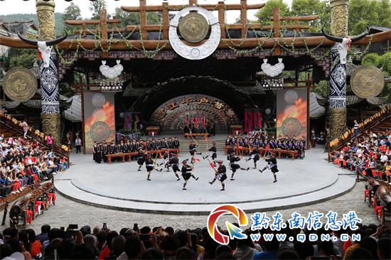 圖為西江景區精彩紛呈的苗族蘆笙舞
