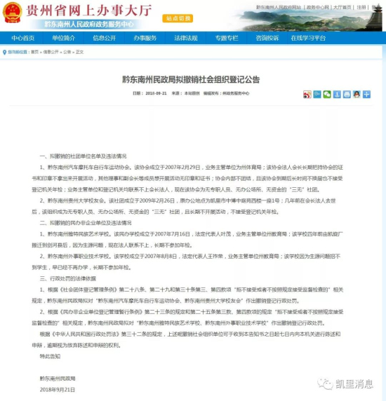 1、根據(jù)《社會(huì)團(tuán)體登記管理?xiàng)l例》第二十八條、第二十九和第三十條第三、第四款項(xiàng)“拒不接受或者不按照規(guī)定接受監(jiān)督檢查的”相關(guān)規(guī)定,黔東南州民政局?jǐn)M對(duì)“黔東南州汽車摩托車自行車運(yùn)動(dòng)協(xié)會(huì)、黔東南州貴州大學(xué)校友會(huì)”作出撤銷登記行政處罰。
