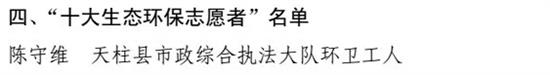授予陳守維等10位同志“十大生態環保志愿者”稱號