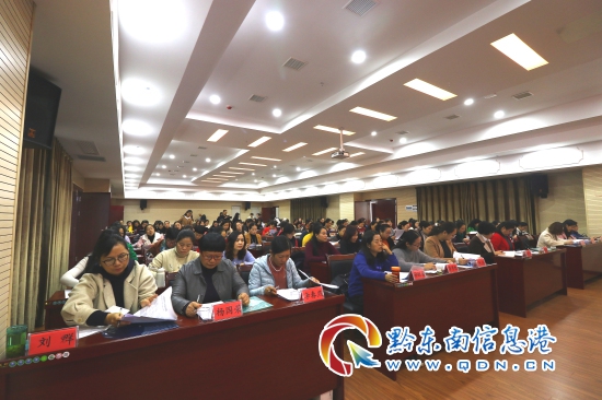 會議傳達和學習了習近平總書記同全國婦聯新一屆領導班子成員集體談話時的重要講話和中國婦女第十二次全國代表大會精神,解讀了《中華全國婦女聯合會章程(修正案)》,對全州婦聯學習宣傳貫徹大會精神作了安排。黔東南州婦聯副主席王曉琴向參會人員詳細的介紹了中國婦女第十二次全國代表大會選舉產生的新一屆全國婦聯領導班子成員以及貴州代表團參會情況,并分享了參會的感受。