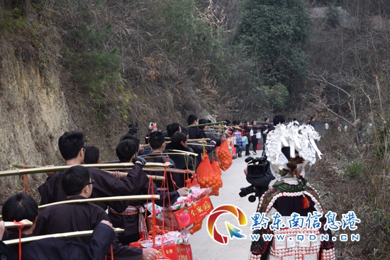 本網(wǎng)訊 2月18日,施秉縣馬號鎮(zhèn)麻力坪苗寨外嫁的姊妹們攜手“姑爹”,身著節(jié)日盛裝, 挑著酒肉水果等浩浩蕩蕩地相約回娘家鬧新春,與父母兄妹團聚話家常。(萬昌成)