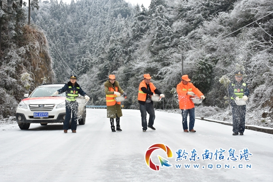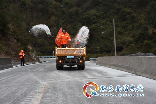 本網訊 2018年1月26日至28日,受低溫凝凍天氣的影響,天柱及錦屏境內公路結冰凝凍,行車受阻。貴州省天柱公路管理段防凍防滑應急隊員在國道G242(天柱縣城至湖南新晃境內)、省道S308(天柱縣邦洞至三穗界)和省道312線(錦屏星子界至八受)進行撒鹽除冰,確保公路安全暢通。(羅顯澄)