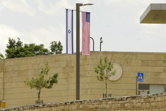圖為美駐以色列大使館新址。(圖片來源:俄羅斯衛星通訊社)