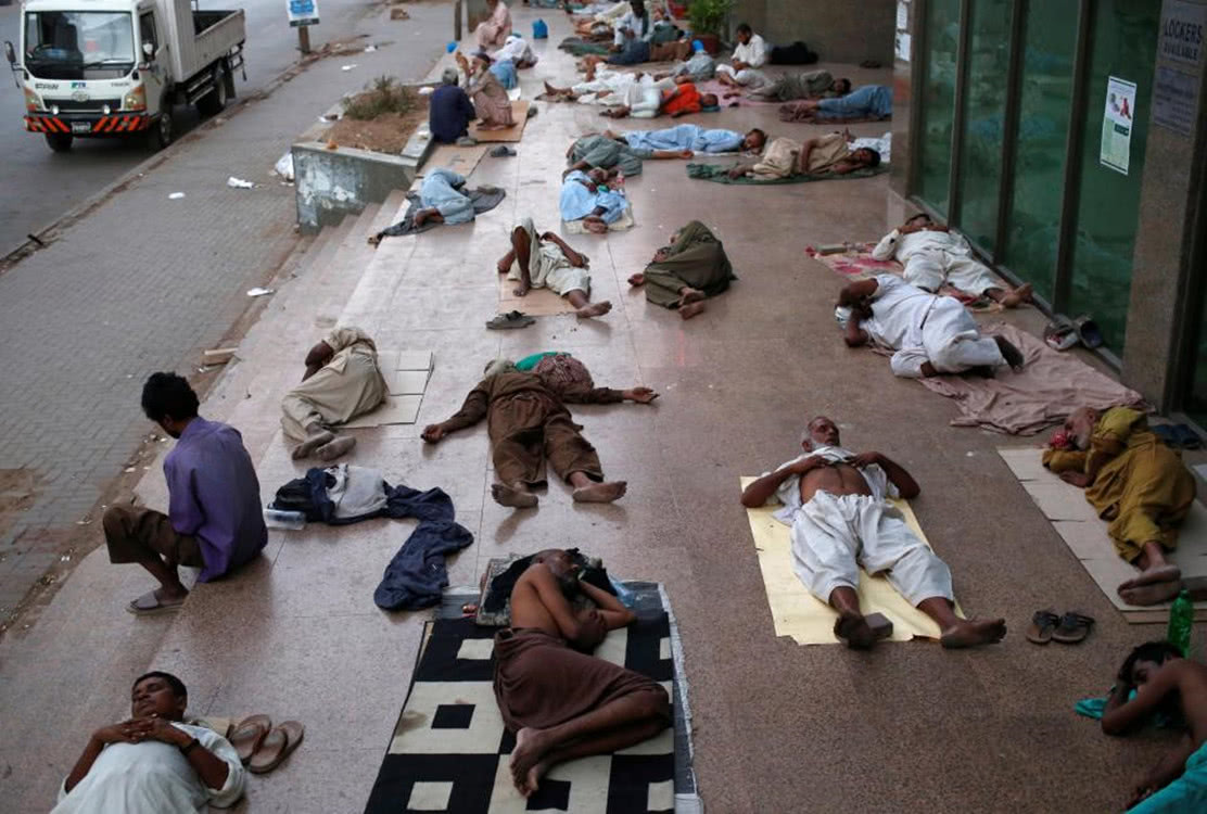據報道,21日卡拉奇氣溫飆升至44攝氏度,同時頻繁出現停電現象。為了逃離室內致命的高溫,人們紛紛跑到大街上,躺在地上。遠遠望去,地面躺滿行人,場面非常壯觀。巴基斯坦艾德希基金會(Edhi Foundation)卡拉奇地區的一位負責人費薩爾•艾德希(Faisal Edhi)在接受路透社采訪時說:“在過去的三天里,有65個人死亡了。”