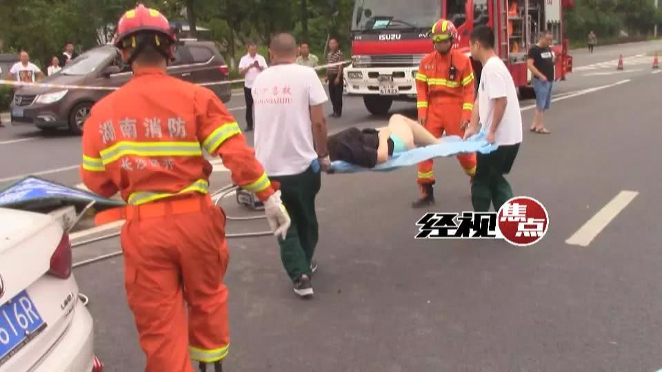 女留學生第一個被救出,立即送往120救護車。而滴滴司機求生意識強烈,在消防破門剎那,他用手推開車門。