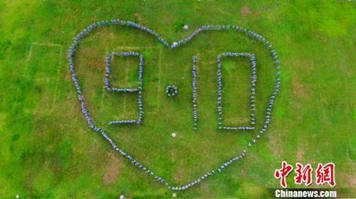 資料圖:300名大學生拼巨型“愛心”感恩教師。孟德龍 攝