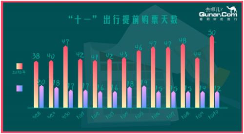 乘客今年“十一”出行在OTA去哪兒平臺(tái)上平均提前購票的天數(shù)達(dá)到40天以上,其中10月10日返回的機(jī)票平均提前購票天數(shù)達(dá)到50天。而去年,“十一”期間人們提前購票的平均天數(shù)最多不過20天。