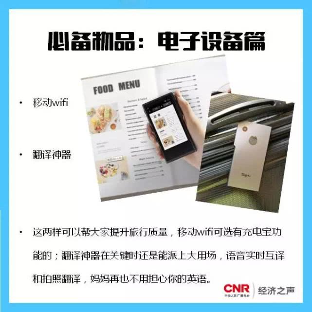 中秋小長假結束,5個工作日后,國慶假期又將開啟!數據顯示,歐洲、中東、非洲等長線游目的地今年十一期間預訂異常火熱。那出國都需要帶哪些物品呢?今天,小編就為大家準備了一份細心整理出行必備“秘籍”,趕緊收藏吧↓↓