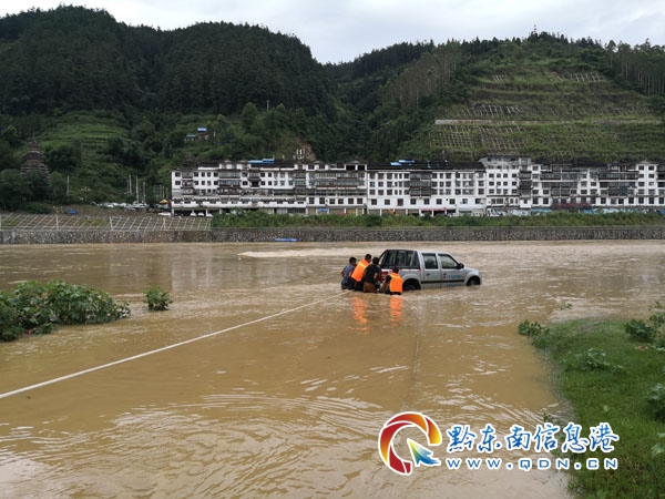 本網訊 7月7 日10時,從江縣消防大隊接到一起社會救助,報警人稱位于從江縣丙妹鎮物資局碼頭有一輛車輛被洪水困住,無人員被困,從江大隊接到報警后隨即出動趕往現場。