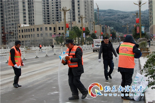 為有效應對雪凝的來襲,12月31日,縣市政局組成突擊隊員,重點對城區(qū)醫(yī)療機構、學校周邊人行道、城區(qū)主干道、人行天橋等重點人員流動較多的地方進行除冰鏟雪、拋撒鹽工業(yè)、清掃垃圾。