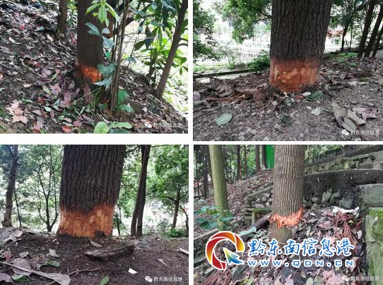 本網訊 (記者 王莉)近日,有市民發現黔東南州物資局職工宿舍前有幾棵樹不知被何人剝去了一圈皮,記者看到這樣一則信息在微信朋友圈里轉發。