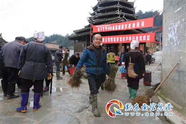 本網(wǎng)訊 3月15日,黔東南州天之地農(nóng)林發(fā)展有限公司7萬株花椒苗木發(fā)放儀式在黎平縣茅貢鎮(zhèn)寨頭村舉行。