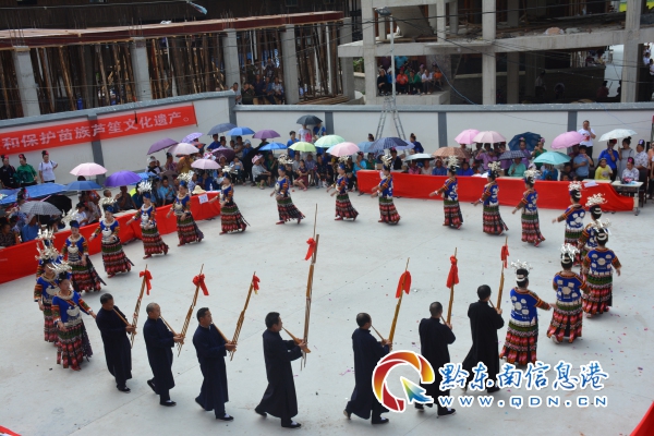 頭戴銀角閃閃歡跳原生態(tài)蘆笙舞方隊(duì)