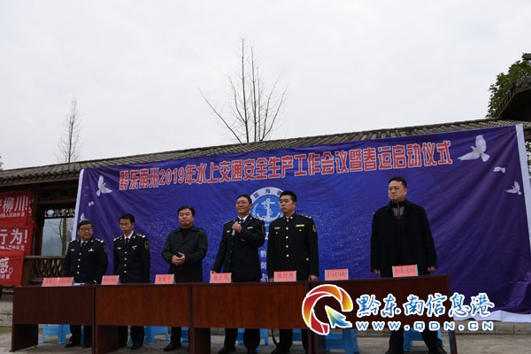 本網訊 為創建水上交通平安祥和的春運環境,督促廣大航運公司(船員)切實做好春運期間水上交通安全生產工作,2019年1月22日,黔東南州水上交通春運啟動儀式在劍河縣柳川碼頭成功舉辦,出席儀式的有黔東南州地方海事局、黔東南州航務管理處和劍河縣人民政府相關領導,劍河、黎平和錦屏3縣海事、航務部門工作人員,劍河轄區內2家航運公司職工等共計60余人。啟動儀式主要圍繞突出船舶檢查、狠抓船員管理、強化隱患整治和加強現場執法等4項工作展開,詳細安排了全州春運期間水上交通安全生產工作,航運公司并對完善落實春運工作進行了表態發言。