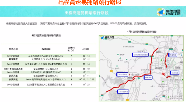 清明假期(4月5日至7日),貴州省白天(6點至22點)易擁堵收費站主要是六盤水南收費站、赤水收費站。