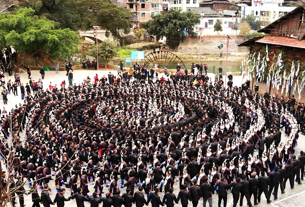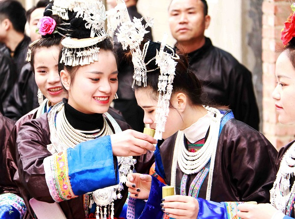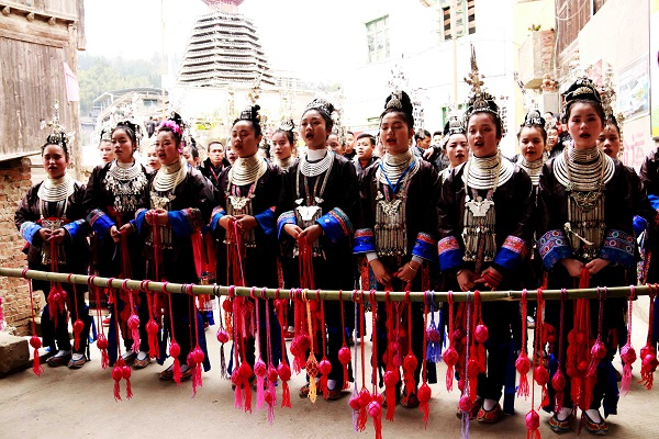 當日下午,頂洞村侗族同胞用傳統習俗,在寨門舉行“攔路”敬酒,在“風雨橋”上“攔路”贈紅鴨蛋,雙迎賓客進村入寨,品侗家美食,喝侗族美酒,賞侗寨風土人情。家家戶戶熱情好客,屋里屋外喜氣洋洋,整個村寨,洋溢著濃濃一派祥和、喜慶、歡樂的新春佳節,全村寨的男女老少,身著盛裝,頭戴閃亮銀飾,齊聚踩歌堂廣場,圍圈轉圈,“哆嘎多耶”踩歌堂,場面宏大、氣氛熱烈,熱鬧非凡,超級震撼,吸引了省內外游客前來旅游觀賞與拍攝。
