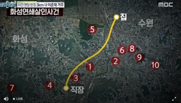 當年華城連環殺人案案發地點,以及嫌犯李某居住和工作的地點。媒體公布照片
