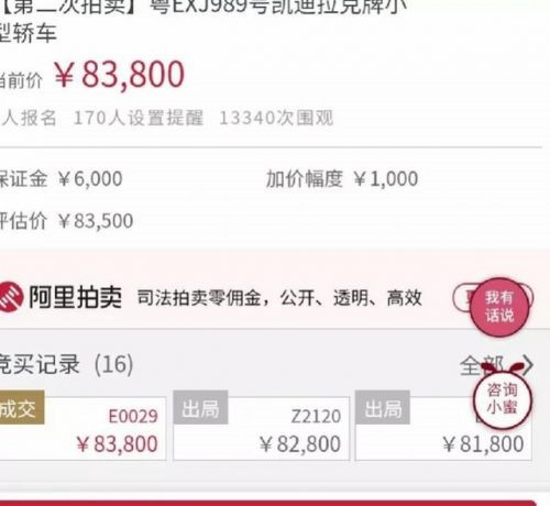 6月12日,南海法院書記員劉鈺查看近期拍賣情況,發(fā)現(xiàn)被執(zhí)行人蔣某一案中,其一輛凱迪拉克小車已顯示成交。