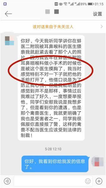 在小魚(yú)提供的與其他網(wǎng)友的聊天截圖中,還有一位自稱(chēng)被仝某某猥褻過(guò)的女孩。事發(fā)時(shí),女孩還在蚌埠一所高校就讀,因?yàn)槎浼膊〉劫谀衬程幘驮\。女孩住院的時(shí)候,被仝某某用嘴接觸到了胸。如今女孩已經(jīng)到了外地,那段遭遇讓她不堪回首。