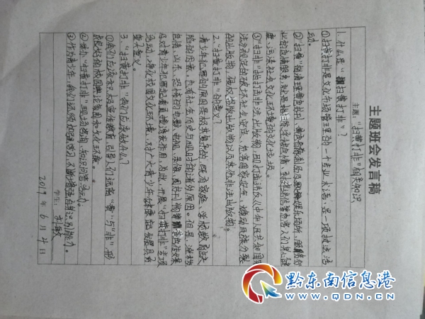 二是在主題班會(huì)上,班主任組織學(xué)生們對“什么是打黃掃非?”、“掃黃打非有什么意義?”、“掃黃打非我們應(yīng)該做什么?”進(jìn)行討論,使學(xué)生們能夠牢記要點(diǎn),提升意識(shí)和素養(yǎng)。