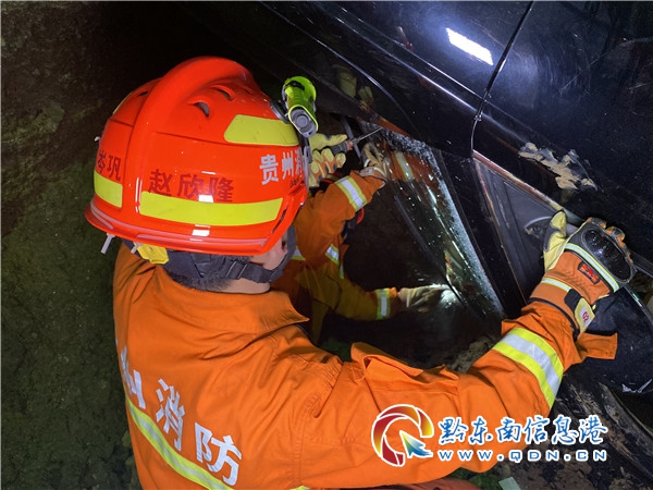救援人員到達(dá)現(xiàn)場(chǎng)后,事發(fā)地點(diǎn)為彎道,一輛小轎車側(cè)翻在工地里,一名男子被困在車內(nèi)。根據(jù)現(xiàn)場(chǎng)情況,消救援人員立即展開救援,由于事故車輛附近周圍都是淤泥,車內(nèi)空間狹小,被困男子被卡在后排座無法動(dòng)彈,救援人員只能先將副駕駛座位靠背放下,再使用破拆工具對(duì)小轎車前擋風(fēng)玻璃進(jìn)行破拆。經(jīng)過救援人員二十分鐘的不懈努力,被困人員被成功救出并移交現(xiàn)場(chǎng)醫(yī)護(hù)人員。