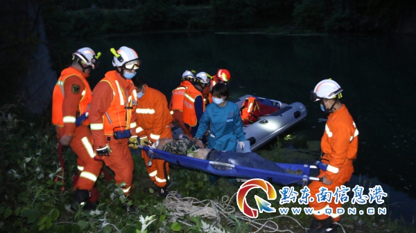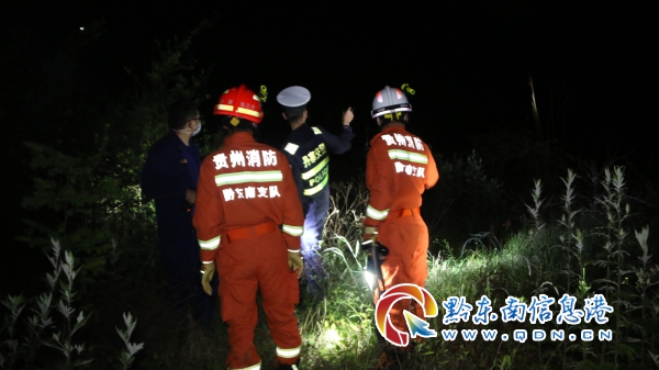 凌晨3點29分,丹寨縣消防大隊接到報警后,立即出動一個搶險救援編隊前往事故現場,到達現場后,民警向消防指戰員講述現場環境和事件經過后,帶領消防指戰員下到崖底探路踩點。