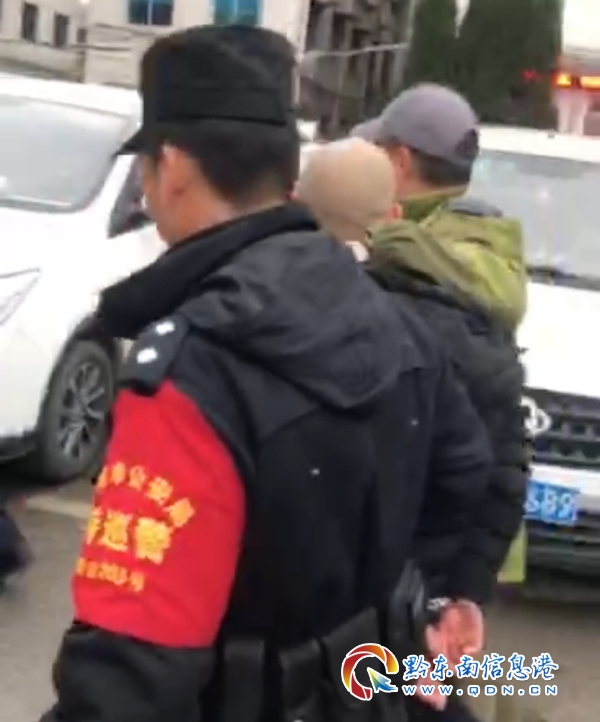 1月14日上午,凱里市公安局特巡警大隊西門網格中隊隊員夏良金、張軒豪、潘光生正在凱里火車站設卡開展武裝盤查時,一名與家人同行,發型為光頭的中等身材男子突然進入警方視線。