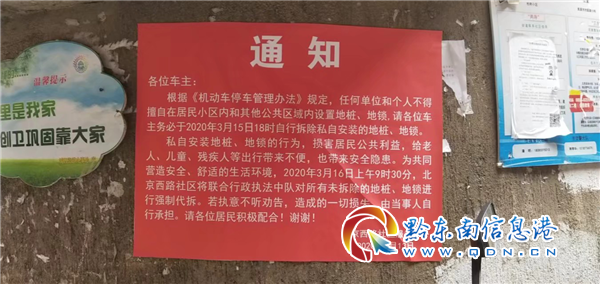 下步,凱里北京西路社區將聯合小區業主、行政執法局、交警隊等相關部門加大巡查,防止私設地樁、地鎖行為反彈,社區將發揮群眾優勢,鼓勵群眾及時舉報,做到及時發現、及時處理,定期對小區違法私設地樁地鎖進行清理和拆除,營造文明有序的小區環境,促進小區居民和諧相處。(金亮亮)