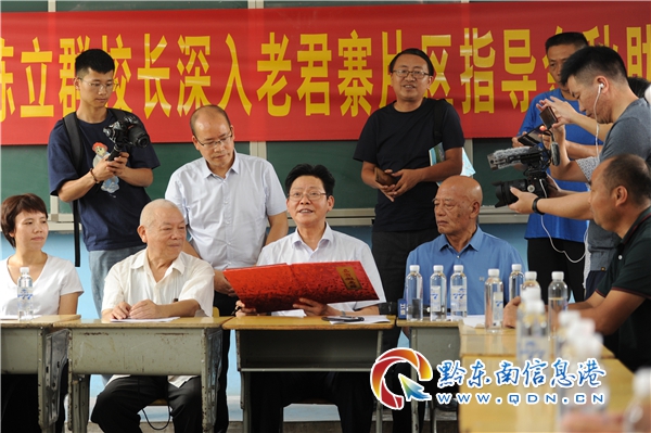 活動期間,陳立群校長為優(yōu)秀學生贈送自己撰寫的著作《寄語青春》,勉勵他們繼續(xù)努力學習,將來報效家鄉(xiāng),報效祖國,還為考上重點高中學生頒發(fā)獎金,鼓勵他們勤奮好學,孜孜不倦,用知識改變家鄉(xiāng),改變命運。老君寨小學禮聘陳立群校長為老君寨小學“名譽校長”。