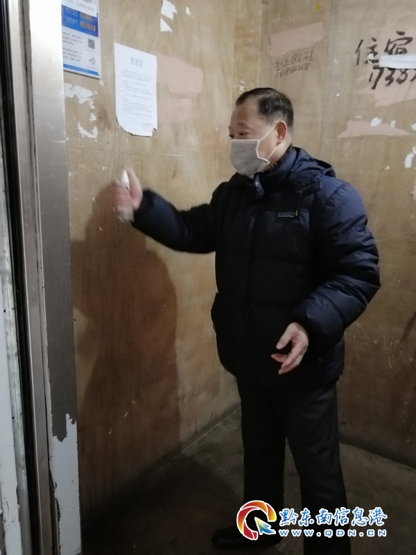 陳雙和同志為電梯按鈕消毒
