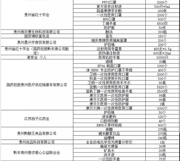 在全國抗擊新冠肺炎疫情的關鍵時刻,黔東南州人民醫院全院干部職工、醫護人員在中共黔東南州委、黔東南州人民政府和上級衛健行政部門的堅強領導下,全面投入到疫情防控救治的緊張工作中,奮戰在抗疫戰斗的第一線。在各類防控物資緊缺的時候,您們及時伸出援助之手,向我院捐贈各類醫療物資和后勤保障物資,讓我們在抗疫一線深切感受到了您們的愛心與奉獻。