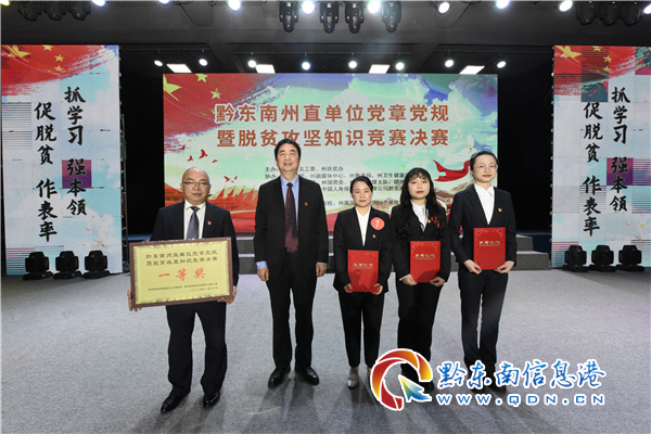 本網(wǎng)訊 11月30日,由黔東南州直機(jī)關(guān)工委和黔東南州扶貧辦主辦,以“抓學(xué)習(xí)、強(qiáng)本領(lǐng)、促脫貧、作表率”為主題的黔東南州直單位黨章黨規(guī)暨脫貧攻堅(jiān)知識競賽活動(dòng)圓滿落幕。州委常委、州委政法委書記、州直機(jī)關(guān)工委書記潘亮同志出席決賽活動(dòng)并致辭,州直機(jī)關(guān)工委常務(wù)副書記高俊華主持第一階段活動(dòng)。來自州直機(jī)關(guān)、州屬院校和州屬國有企業(yè)共96家單位黨組織書記、副書記、黨務(wù)干部,以及選拔出的12支參賽代表隊(duì)等共計(jì)280余人參加決賽活動(dòng)。