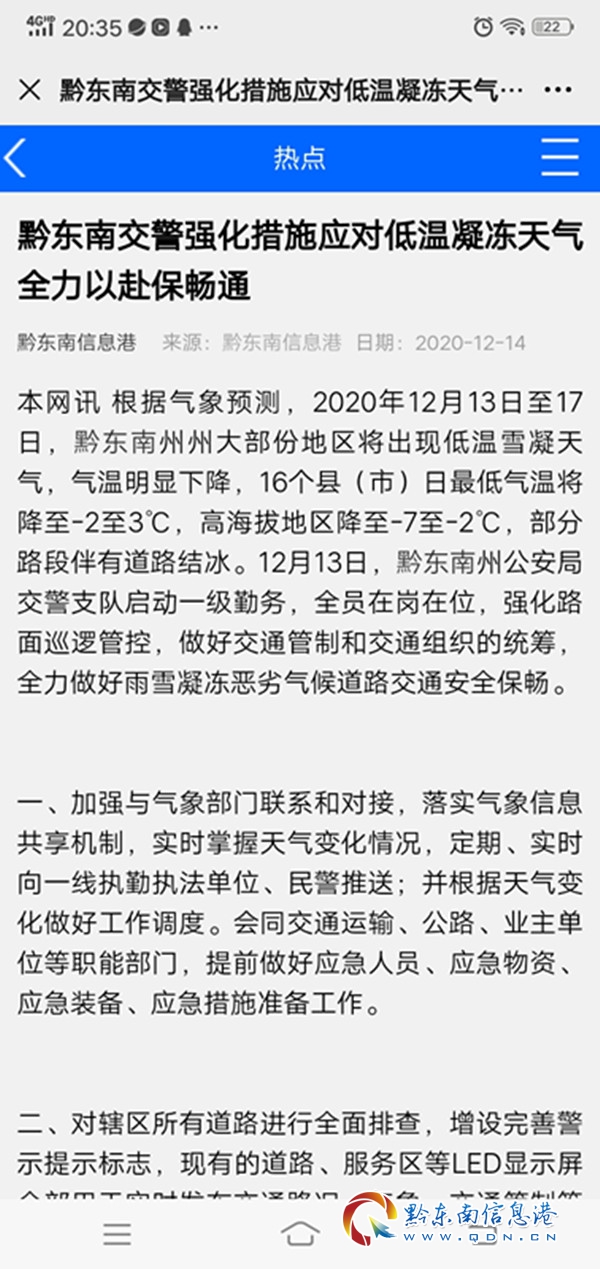 黔東南州公安局交警支隊對抗凝保暢宣傳工作高度重視,制定了宣傳工作方案,對抗凝保暢宣傳工作進行了安排部署,爭取工作上的主動,支隊宣傳科做好抗凝保暢期間宣傳工作進行了統籌,積極加強與新聞媒體聯系,邀請記者采訪報道,各交警大隊宣傳民警、輔警也行動起來,他們聞警而動,放棄了休息日,紛紛深入一線,拿起了照相機、攝影機和筆桿子,用一篇篇鮮活的報道,一幅幅生動的圖片,一個個感人的鏡頭,實時記錄公安交警抗凝凍保暢通的全過程,第一時間發現和挖掘民警輔警在一線破冰保暢、排難救險、英勇奮戰的感人事跡,積極協調新聞媒體進行重點宣傳報道,推出了一大批事跡感人的先進典型,振奮了精神,鼓舞了士氣。