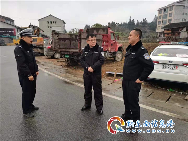 12月29日,州公安局黨委委員、交警支隊長肖文斌(左三)深入督導凝保暢工作