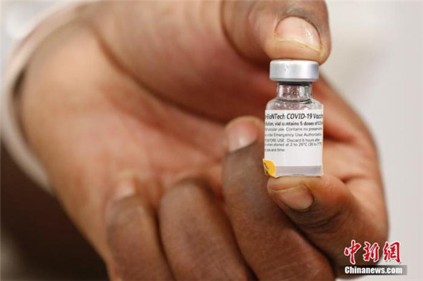當地時間 12 月 14 日,紐約長島猶太醫療中心護士展示美國首批新冠疫苗。當日,輝瑞公司首批近 300 萬劑新冠疫苗陸續運抵美國各地。 中新社記者 廖攀 攝