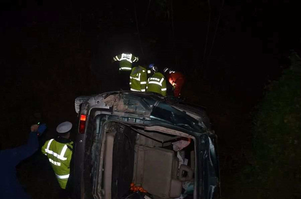 據向高速交警了解,現場一輛豐田霸道越野車沖出高速圍欄,跌落山谷,一人甩出車外當場死亡、兩人被困車內重傷、一人甩出車輕傷。